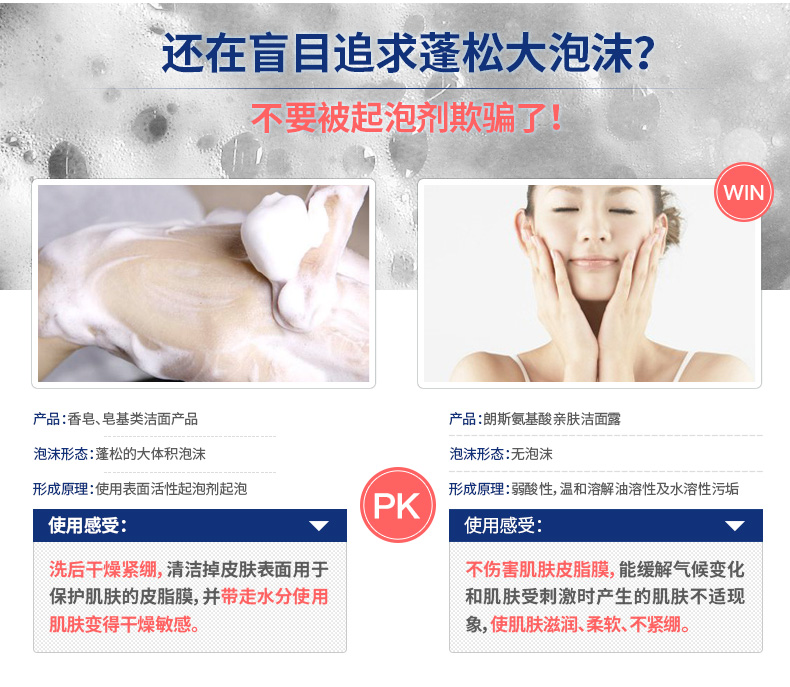純天然氨基酸成分,親膚無(wú)刺激,敏感肌膚也可以使用。食品級(jí)原料,可以吃的洗面奶!