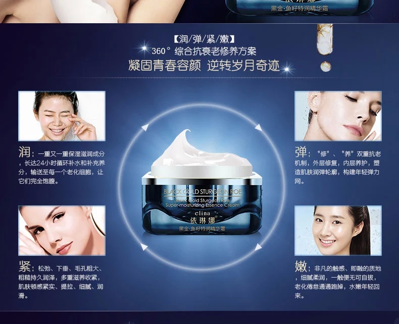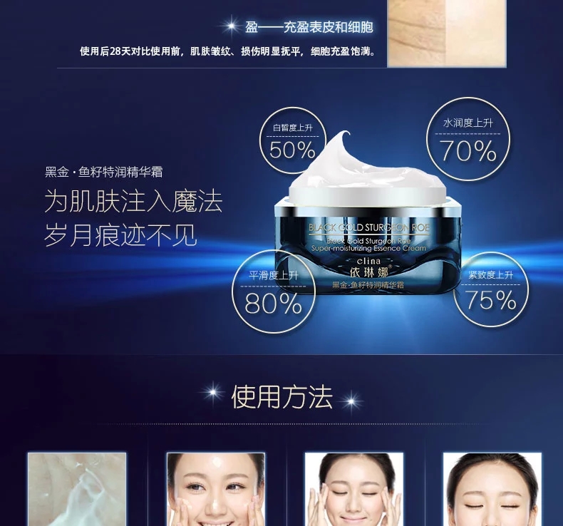 • 產(chǎn)品名稱:依琳娜 黑金魚籽特潤(rùn)精華霜